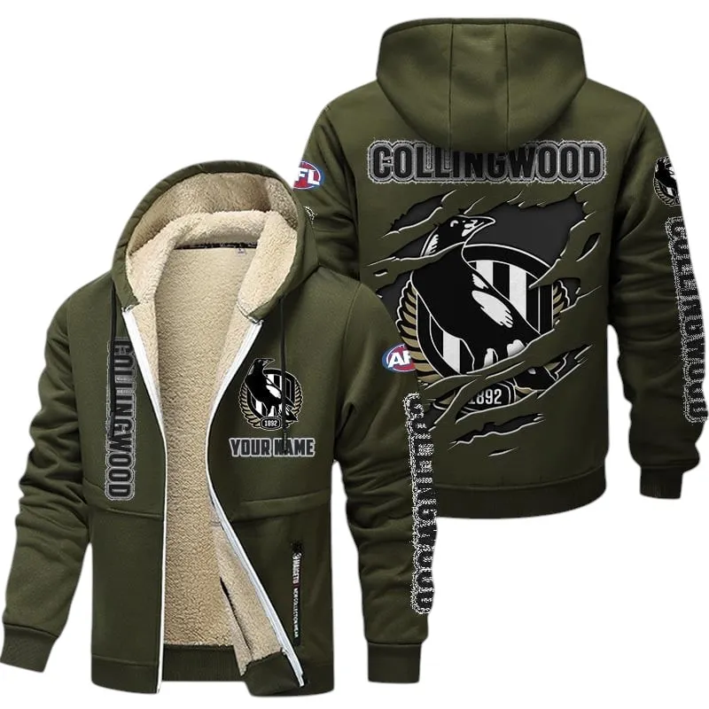 Collingwood Fans Gift Lamb Fleece Thick Coat, All Over Print Thick Coat For Sport Fan, Custom Name AFL145071825123 – Army Green