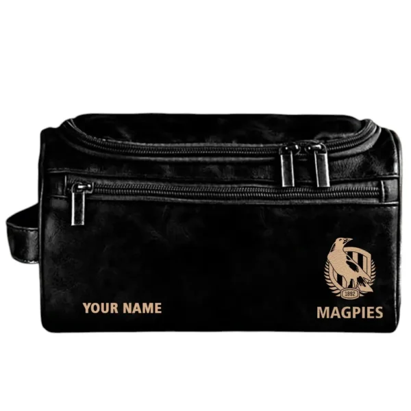 Collingwood Fans Gift Leather Toiletry Bag, All Over Print Leather Toiletry Bag For Sport Fan, Custom Name AFL156071525125 – Black