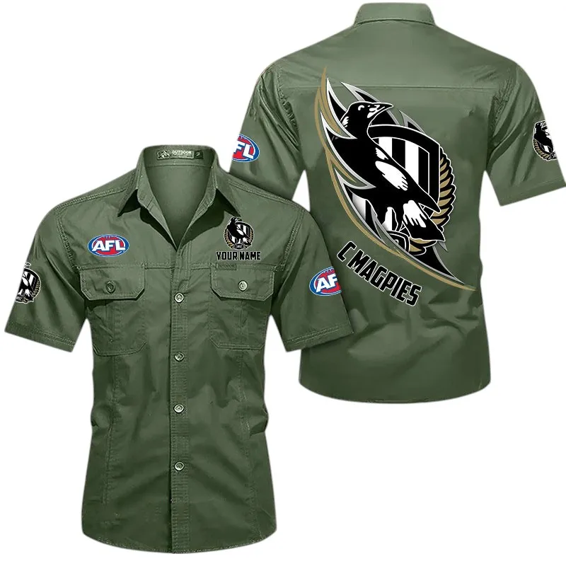 Collingwood Fans Gift Short Sleeved Shirt, All Over Print Shỉt For Sport Fan, Custom Name AFL155071425138 - Army Green