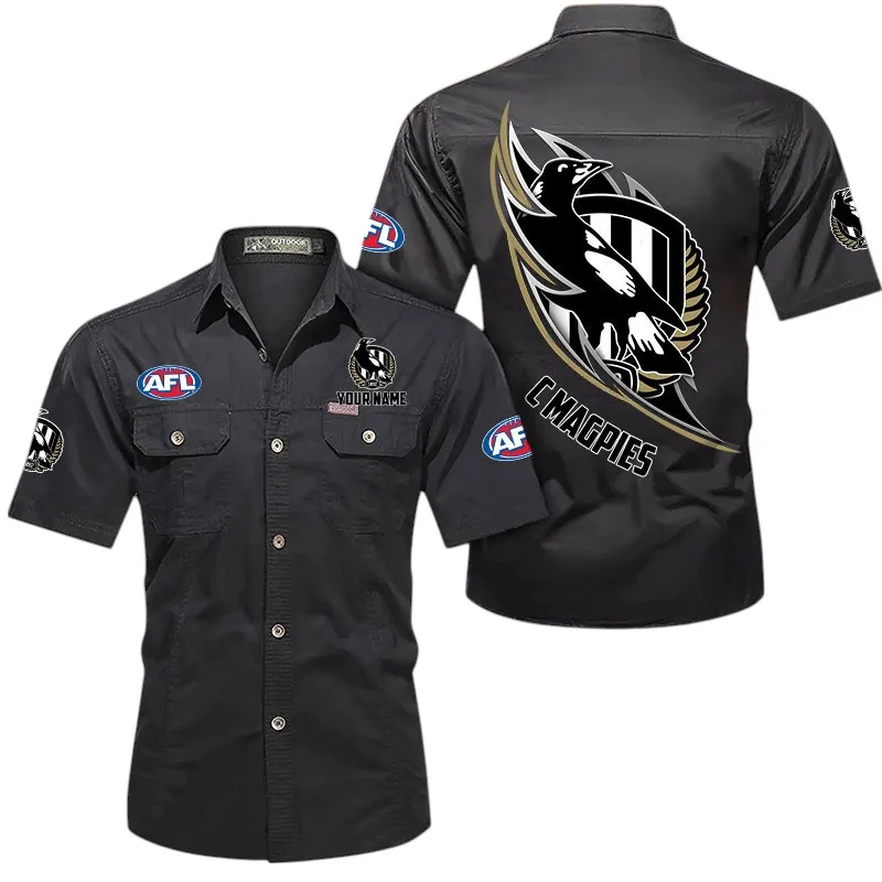 Collingwood Fans Gift Short Sleeved Shirt, All Over Print Shỉt For Sport Fan, Custom Name AFL155071425138 - Black