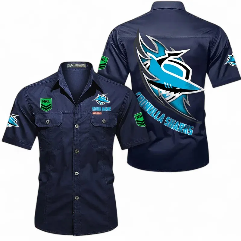 Cronulla Sharks Fans Gift Short Sleeved Shirt, All Over Print Short Sleeved Shirt For Sport Fan, Custom Name NRL173071625002-Dark Blue