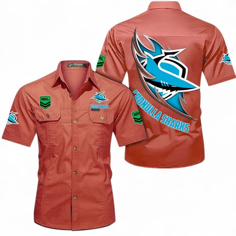 Cronulla Sharks Fans Gift Short Sleeved Shirt, All Over Print Short Sleeved Shirt For Sport Fan, Custom Name NRL173071625002-Red