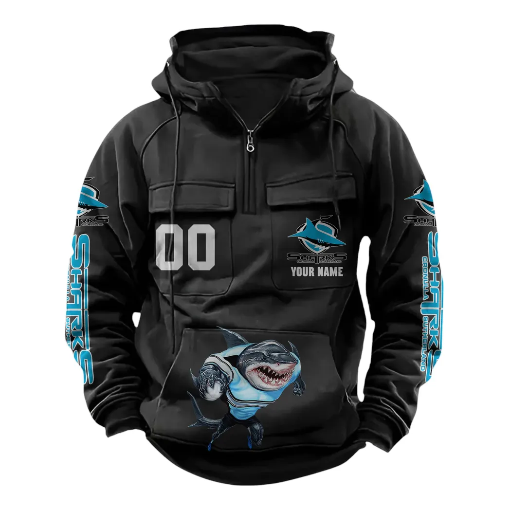 Cronulla Sharks NRL Tactical Quarter Zip Hoodie NRL43012125602, Gift For Fan Cronulla Sharks - Black