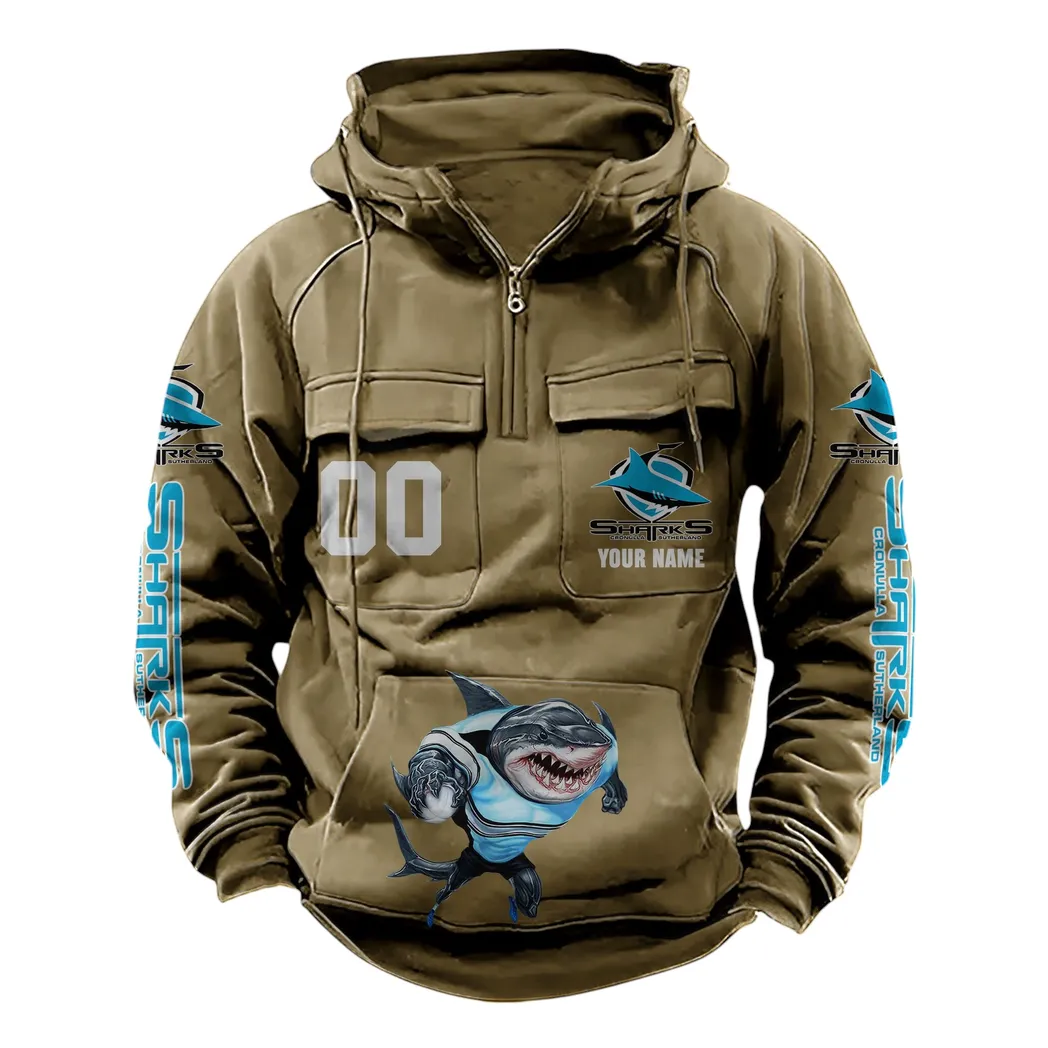 Cronulla Sharks NRL Tactical Quarter Zip Hoodie NRL43012125602, Gift For Fan Cronulla Sharks - Khaki