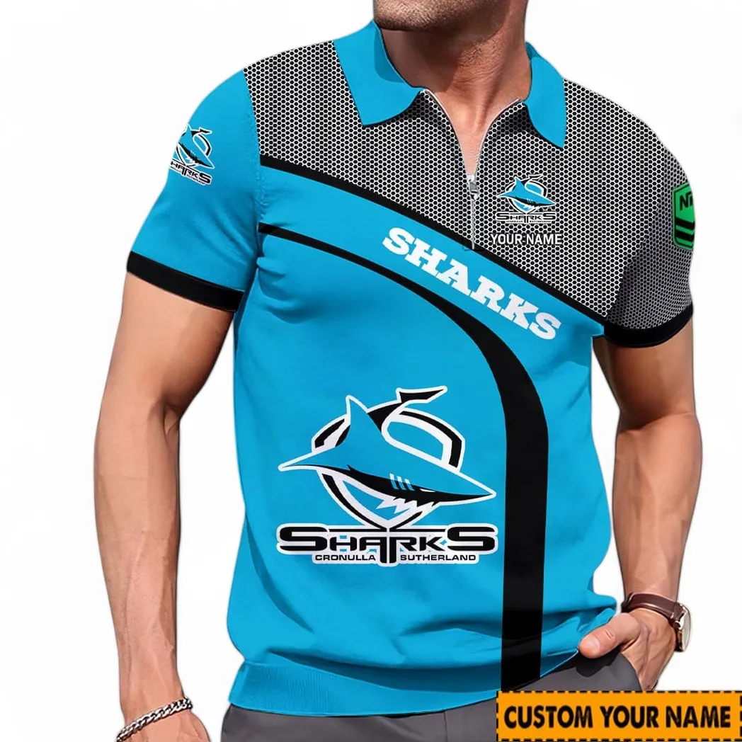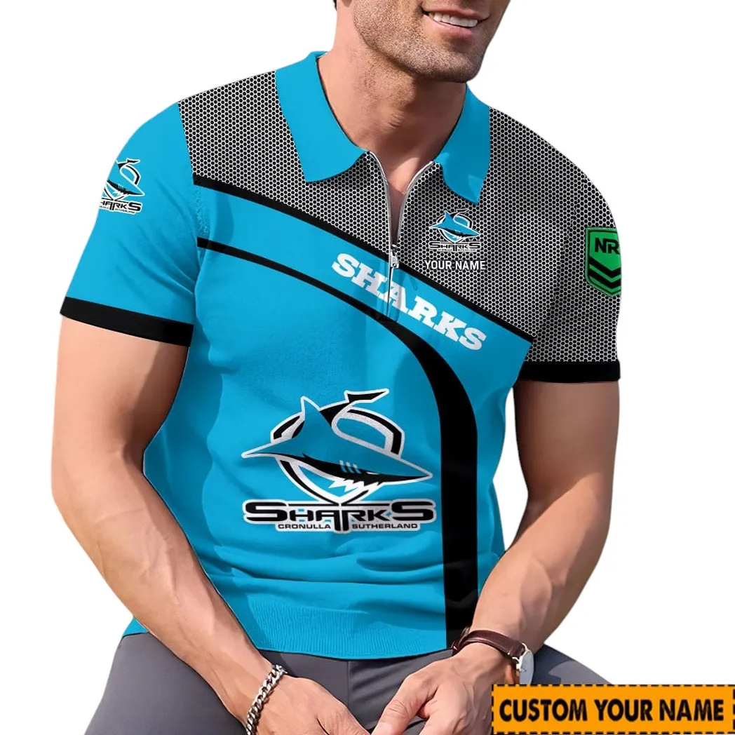 Cronulla Sharks NRL Zipper Polo Shirt NRL02121624400, Gift For Fan Cronulla Sharks