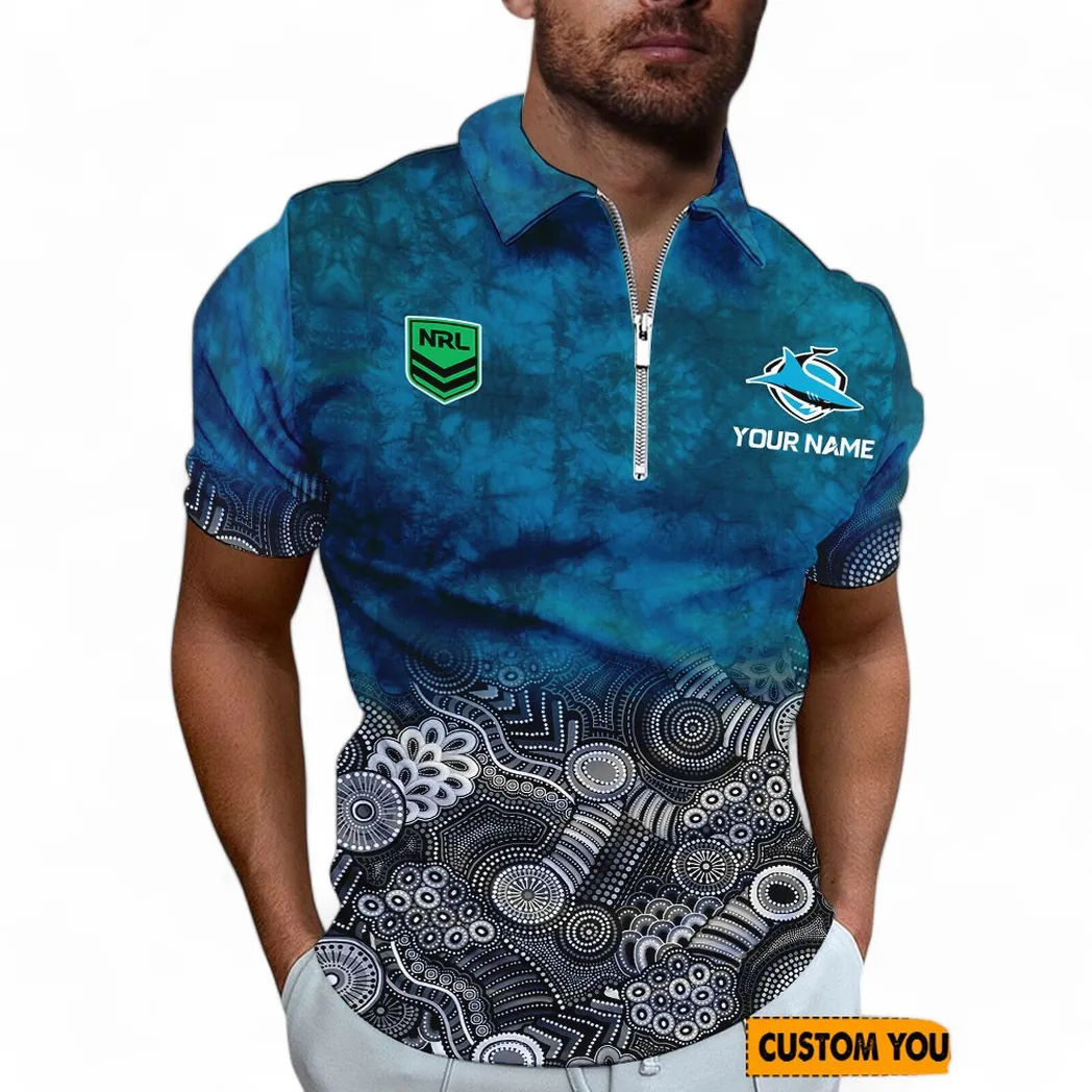 Cronulla Sharks NRL Zipper Polo Shirt NRL02121624437, Gift For Fan Cronulla Sharks