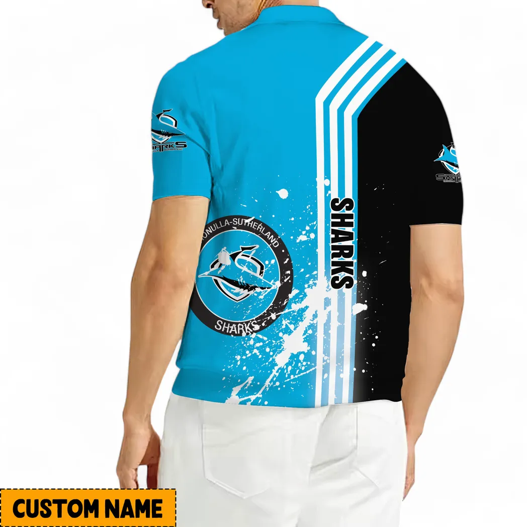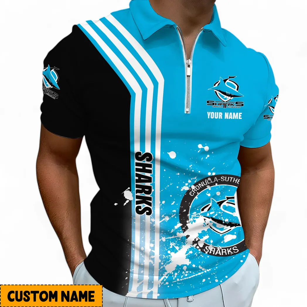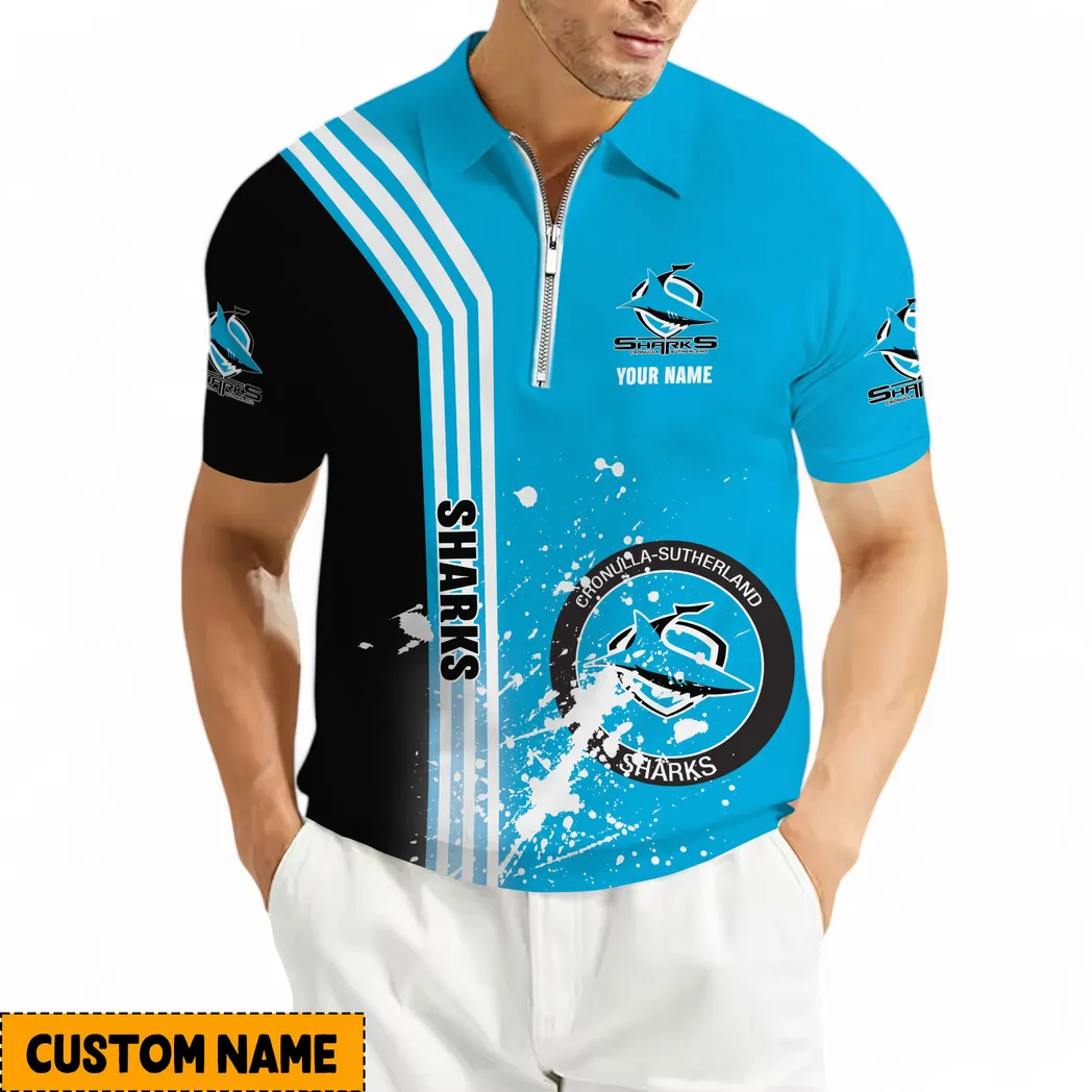 Cronulla Sharks NRL Zipper Polo Shirt NRL11122324114, Gift For Fan Cronulla Sharks