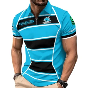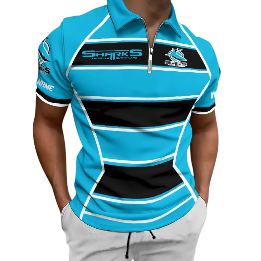 Cronulla Sharks Zipper Polo Shirt, All Over Print Zipper Polo Shirt Cronulla Sharks DNRL144722034