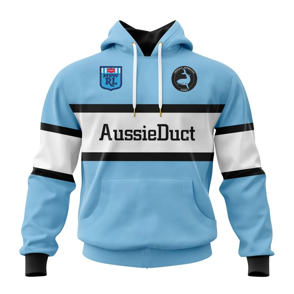 Cronulla-Sutherland Sharks Retro NRL Hoodie 3D Print, Personalize Name and Number NRL108061625900