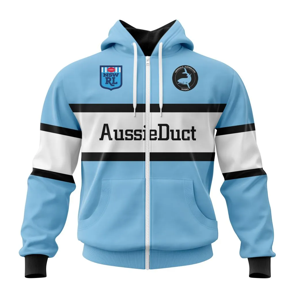 Cronulla-Sutherland Sharks Retro NRL Zipper Hoodie 3D Print, Personalize Name and Number NRL108061625900