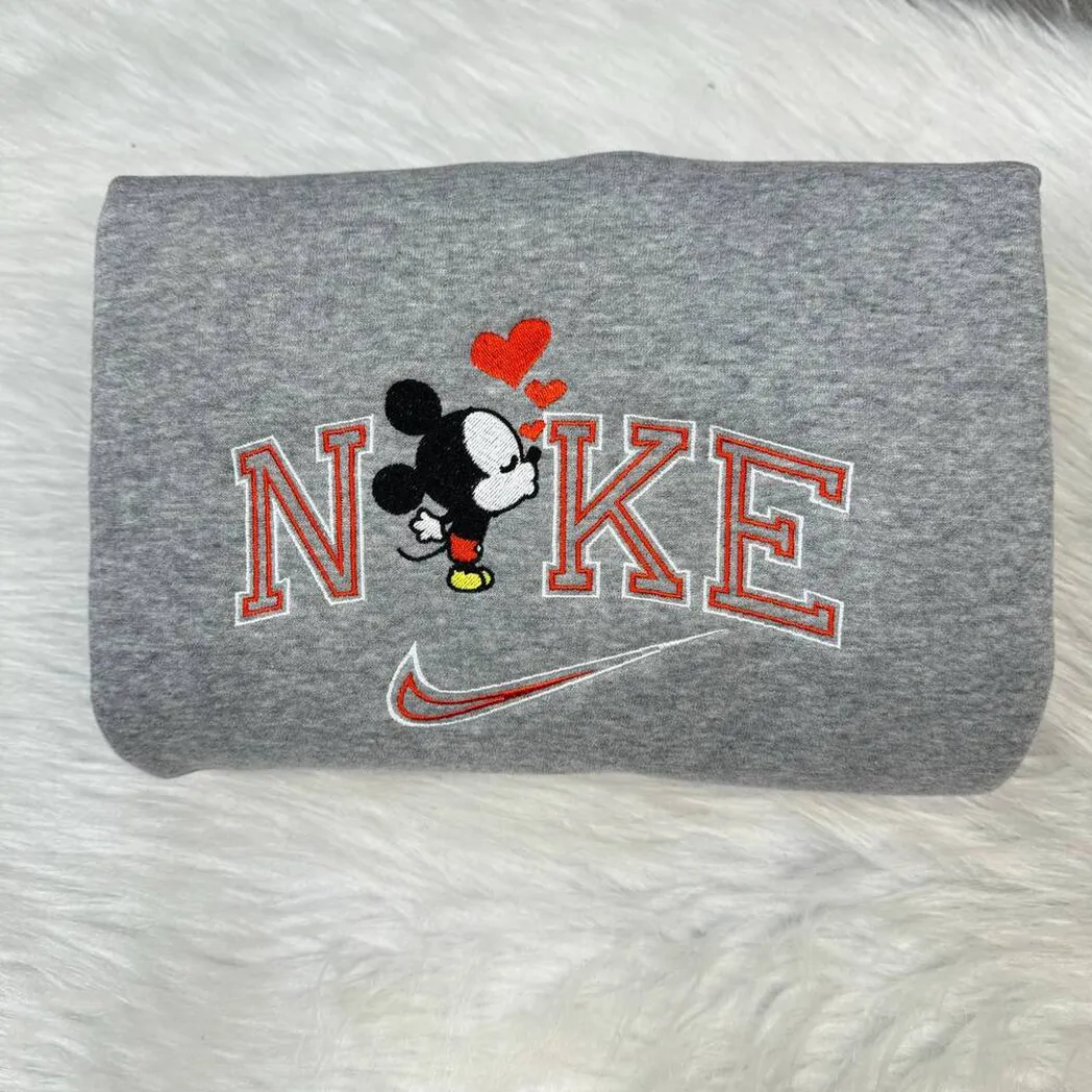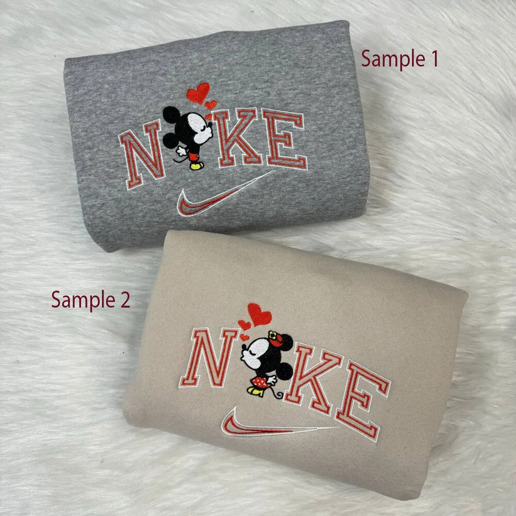 Cute Mickey And Minnie Disney x Nike Embroidered Shirt, Embroidered Sweatshirt Fashion Style For Couples