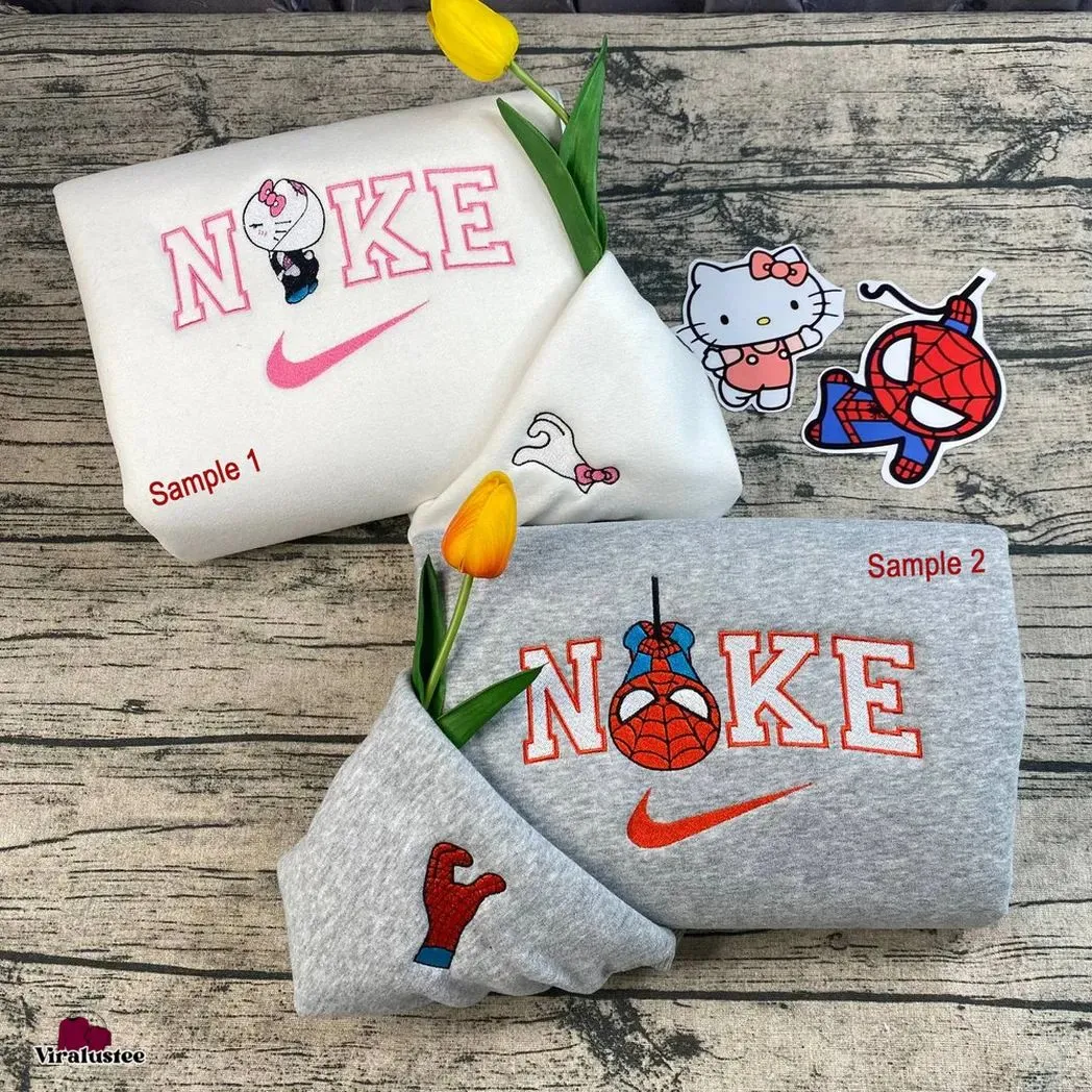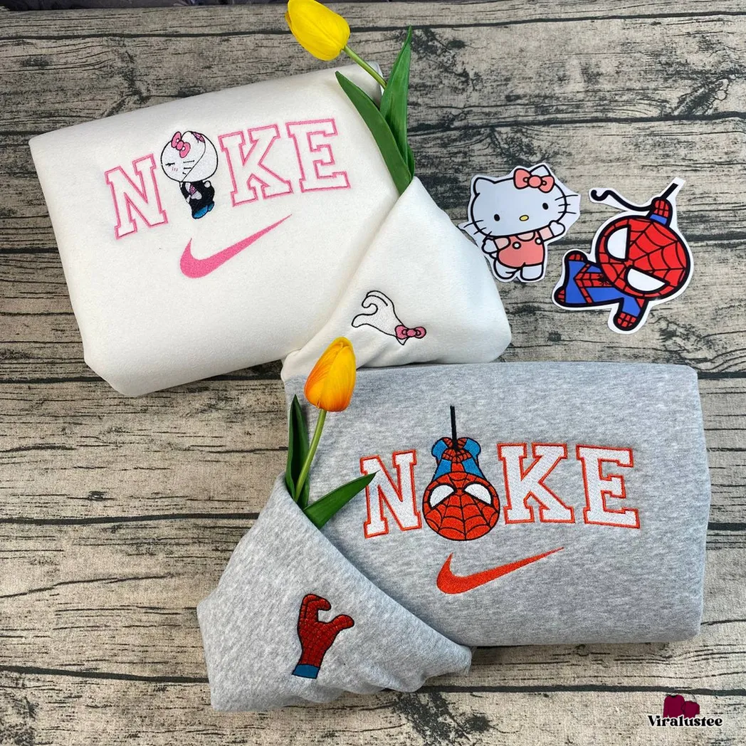 Cute Spiderman and Gwen Stacy Kitty x Nike Embroidered Shirt, Embroidered Sweatshirt Fashion Style For Couples