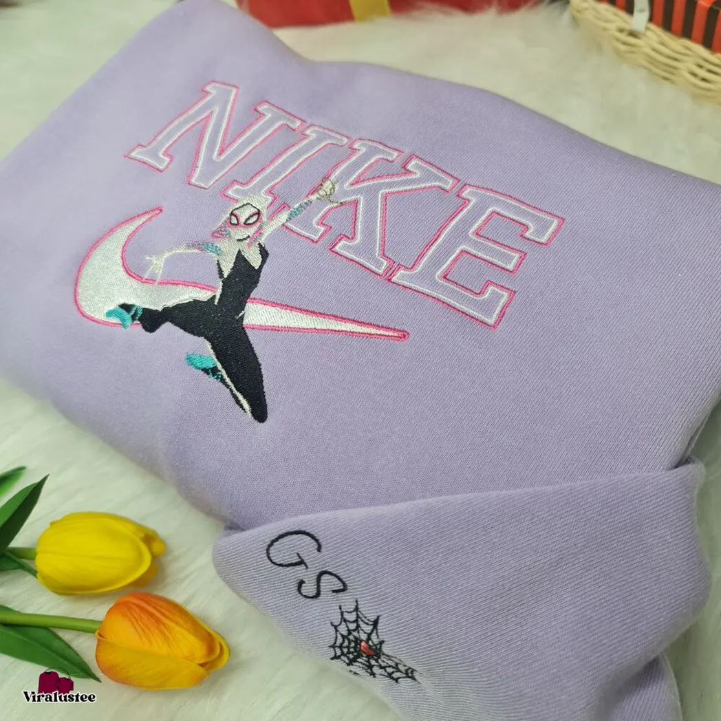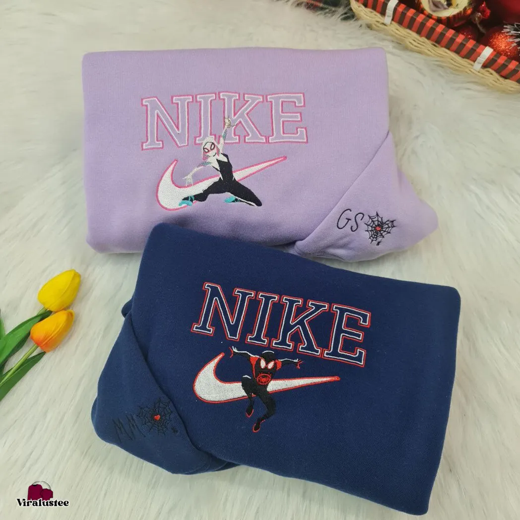 Cute Spiderman Miles Morales and Gwen Stacy x Nike Embroidered Shirt, Embroidered Sweatshirt Fashion Style For Couples