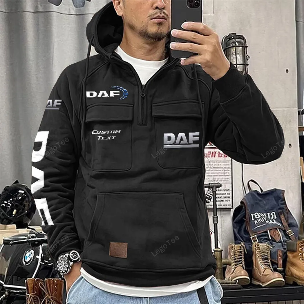 DAF Tactical Quarter Zip Hoodie CAR106021525045, Gifts For Men, Him, Husband, Boyfriend – Black