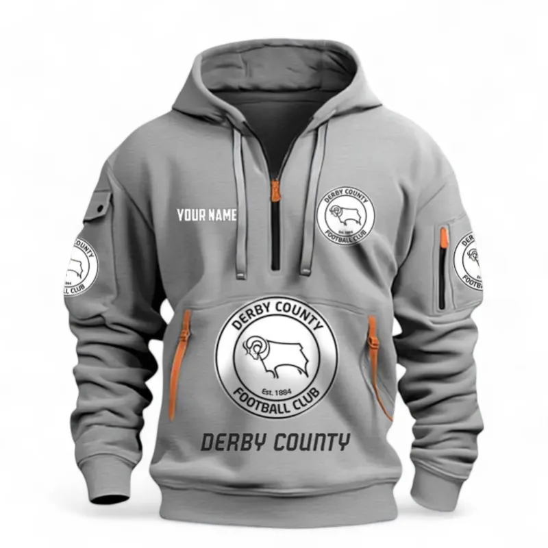Derby County Fans Gift Hoodie Half Zipper, All Over Print Hoodie Half Zipper For Sport Fan, Custom Name EPL116073125037-Grey