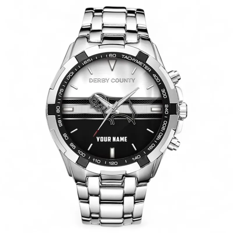 Derby County Fans Gift Steel Watches, All Over Print Steel Watches For Sport Fan, Custom Name EPL99072825031