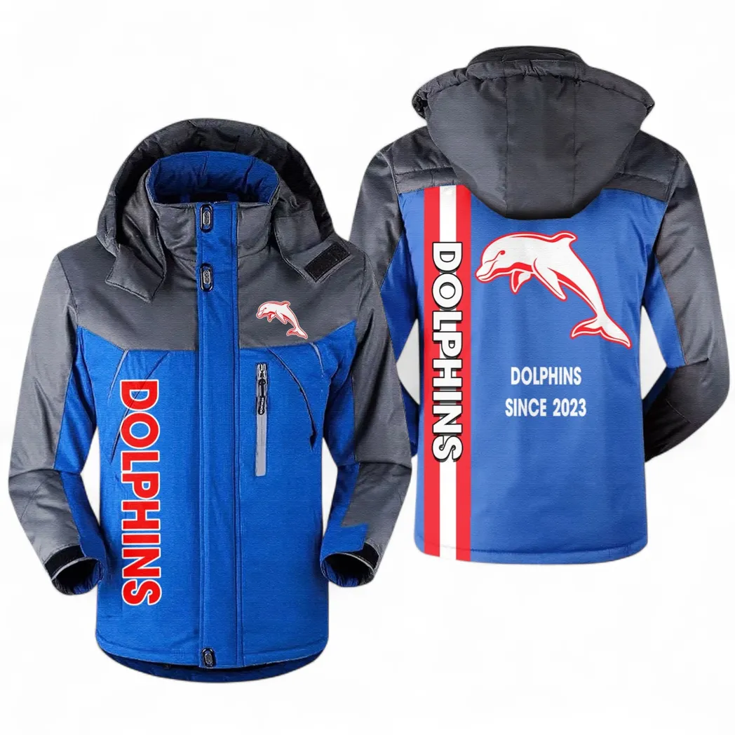 Custom Outdoor Charging Jacket For Dolphins NRL Fans – All-Weather Protection, Game-Day Energy