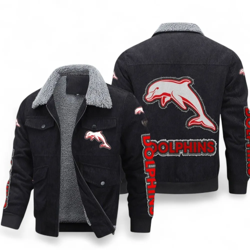 Custom Dolphins Thickened Corduroy Jacket – Classic Warmth, Bold Team Spirit