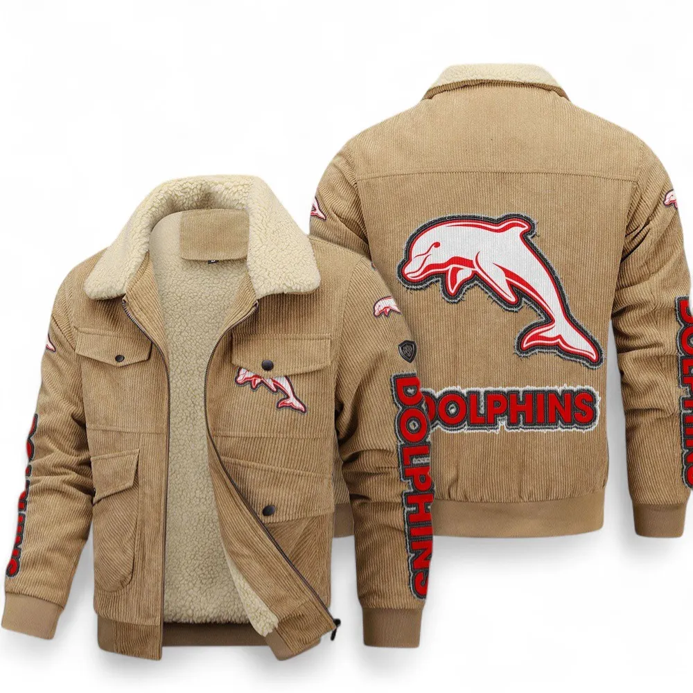 Custom Dolphins Thickened Corduroy Jacket – Classic Warmth, Bold Team Spirit