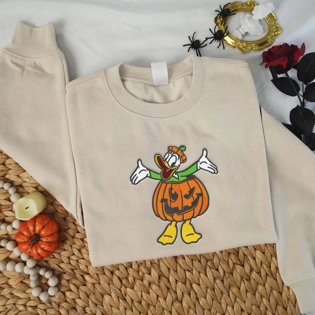 Donald Duck Cartoon Halloween Embroidered Sweatshirt Fashion Style