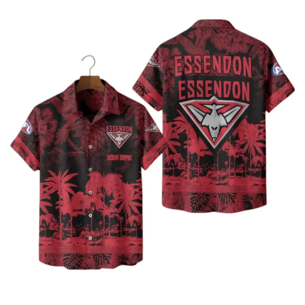 Essendon Fans Gift Hawaiian Shirt, All Over Print Hawaiian Shirt For Sport Fan, Custom Name AFL157071425135