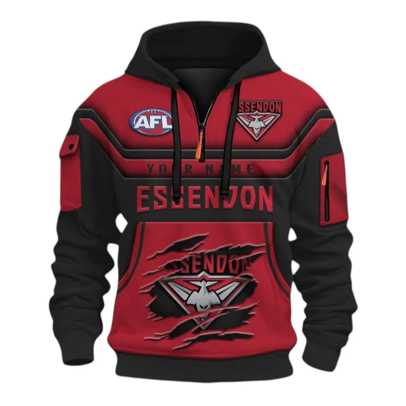 Custom Half-Zip Hoodie 3D Printed for Essendon Fans – Game-Ready Comfort Meets Personalized Power