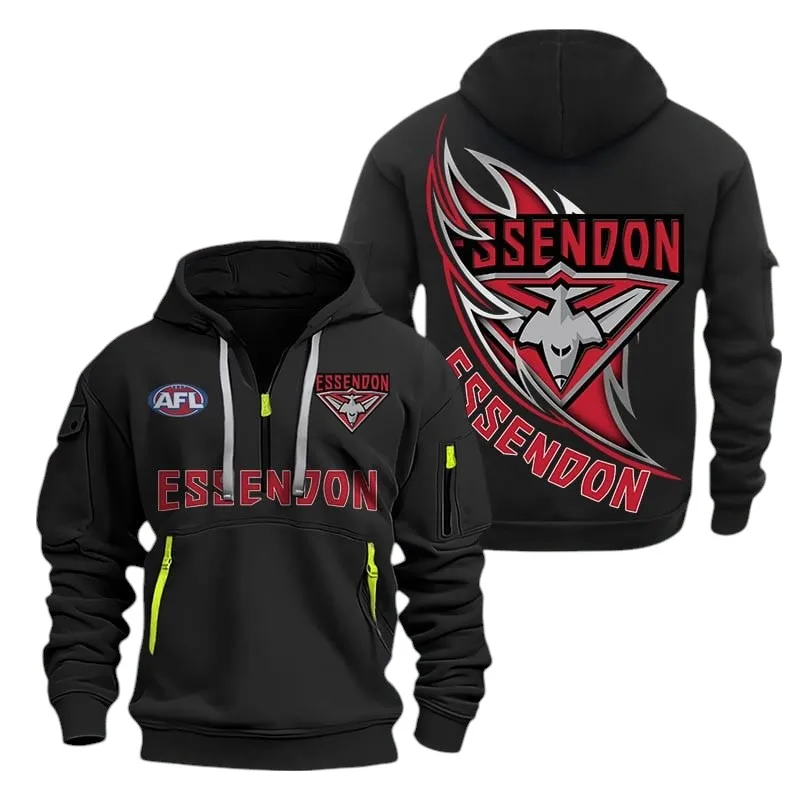 Essendon Fans Gift Hoodie Half Zipper, All Over Print Hoodie Half Zipper For Sport Fan AFL142071225127 – Black