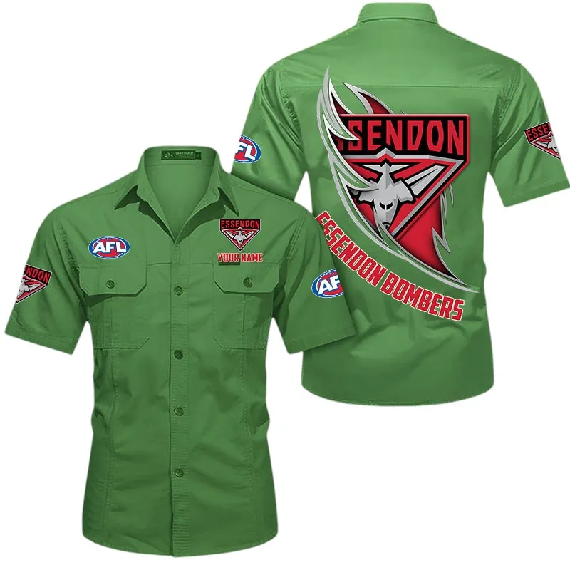 Essendon Fans Gift Short Sleeved Shirt, All Over Print Shỉt For Sport Fan, Custom Name AFL155071425126 - Army Green