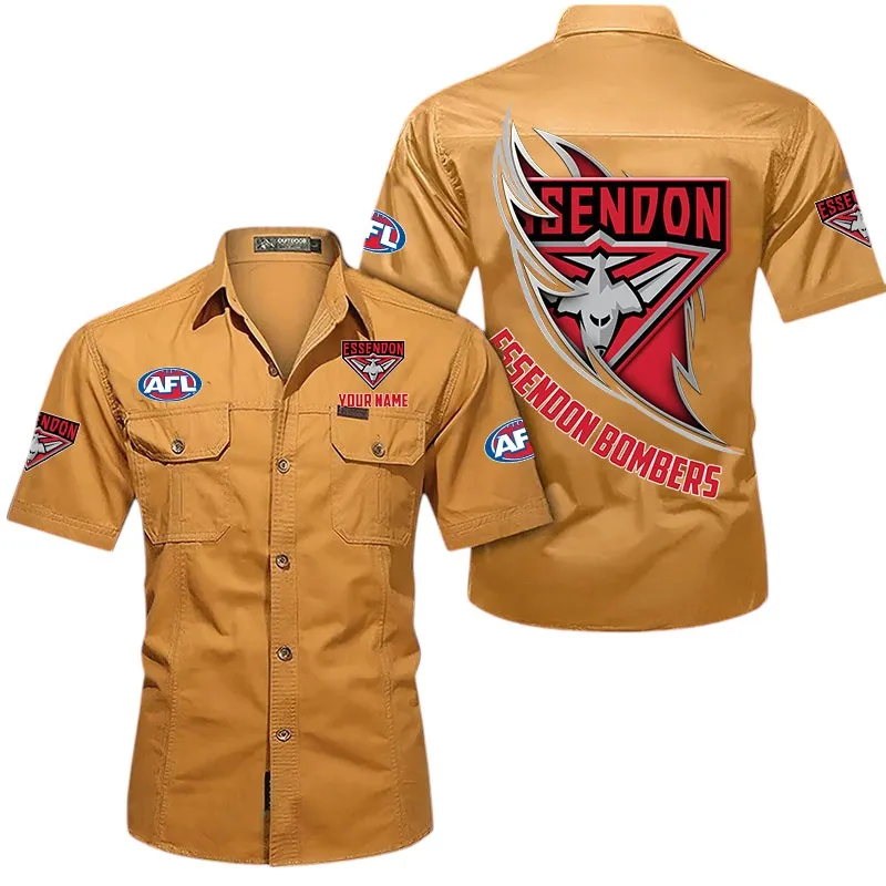 Essendon Fans Gift Short Sleeved Shirt, All Over Print Shỉt For Sport Fan, Custom Name AFL155071425126 - Khaki
