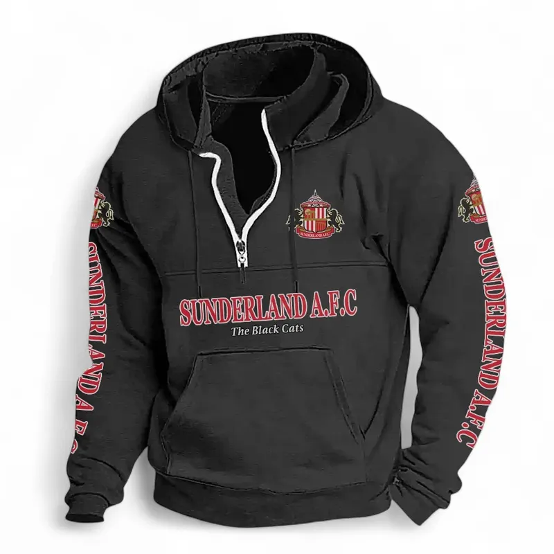 Football Fans Gift Casual Stand Up Collar Hoodie, Hoodie Stand-Up Collar Exclusive Logo For Sport Fan EPL125082225777-Black