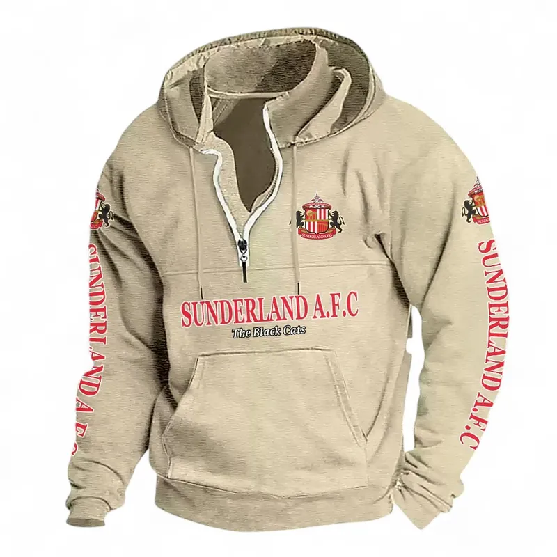 Football Fans Gift Casual Stand Up Collar Hoodie, Hoodie Stand-Up Collar Exclusive Logo For Sport Fan EPL125082225777-Off-White