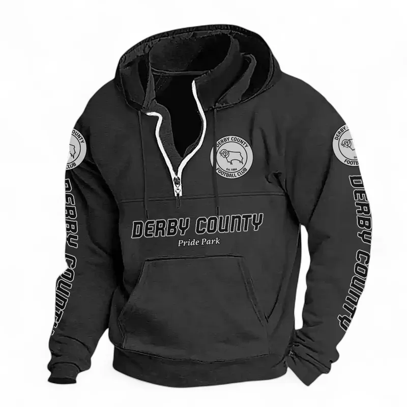 Football Fans Gift Casual Stand Up Collar Hoodie, Hoodie Stand-Up Collar Exclusive Logo For Sport Fan EPL125082225778-Black