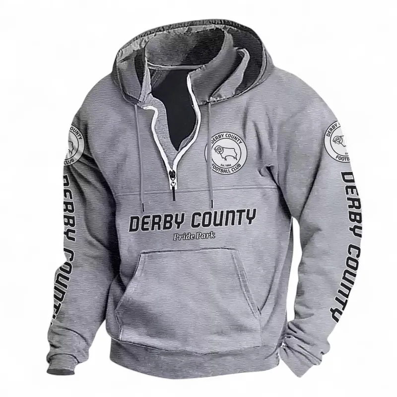 Football Fans Gift Casual Stand Up Collar Hoodie, Hoodie Stand-Up Collar Exclusive Logo For Sport Fan EPL125082225778-Light Gray