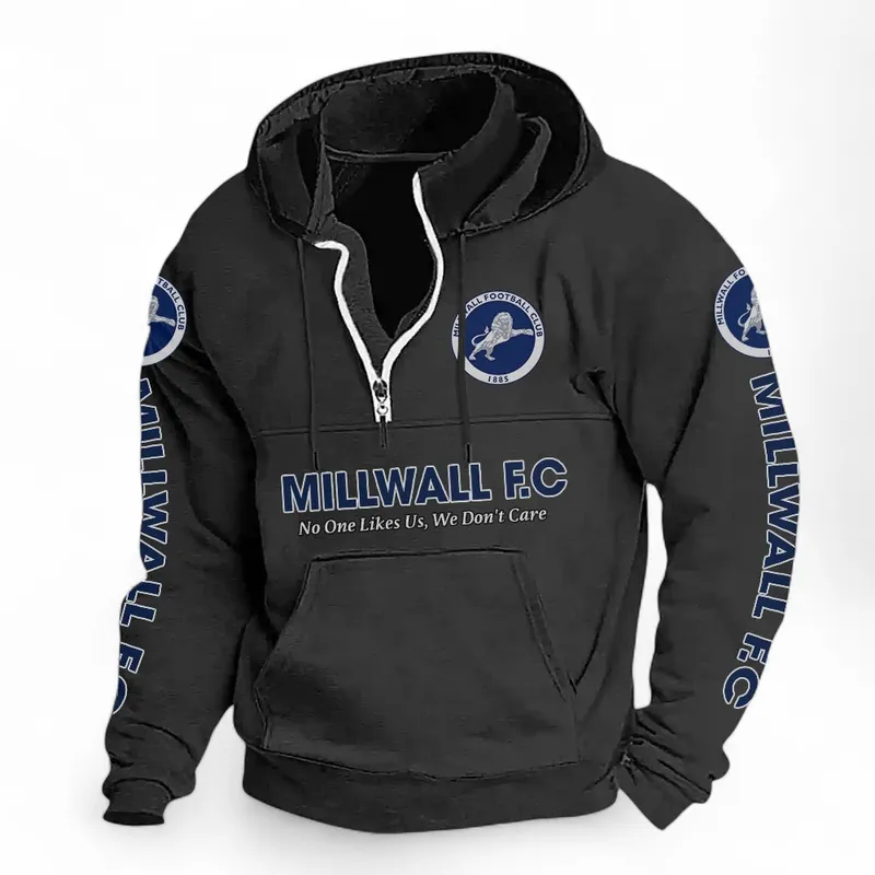 Football Fans Gift Casual Stand Up Collar Hoodie, Hoodie Stand-Up Collar Exclusive Logo For Sport Fan EPL125082225779-Black
