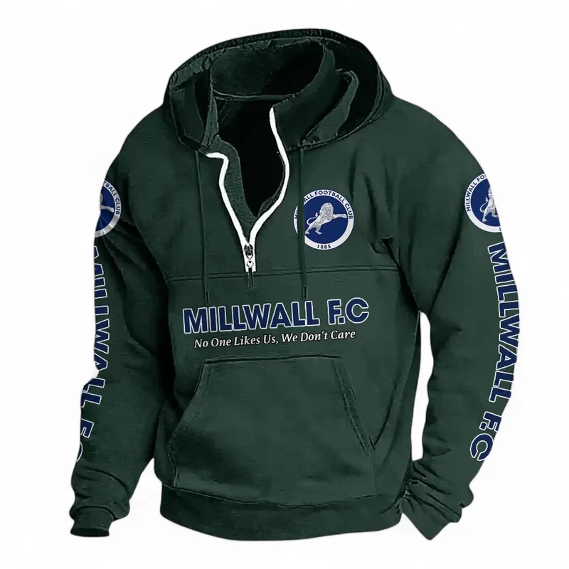 Football Fans Gift Casual Stand Up Collar Hoodie, Hoodie Stand-Up Collar Exclusive Logo For Sport Fan EPL125082225779-Dark Green
