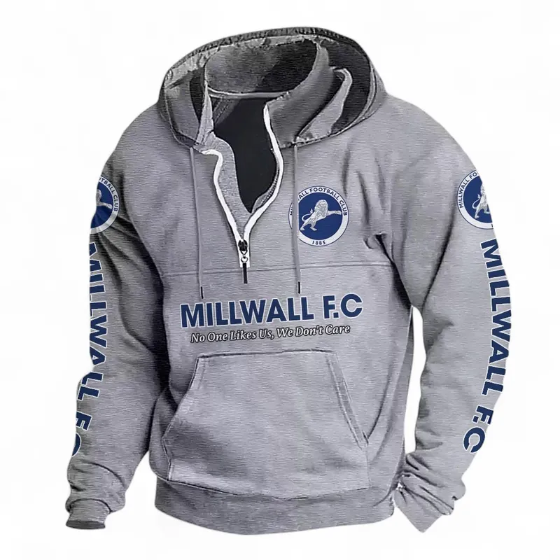 Football Fans Gift Casual Stand Up Collar Hoodie, Hoodie Stand-Up Collar Exclusive Logo For Sport Fan EPL125082225779-Light Gray