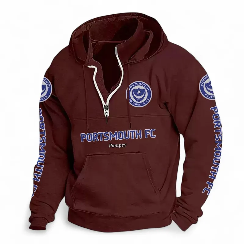 Football Fans Gift Casual Stand Up Collar Hoodie, Hoodie Stand-Up Collar Exclusive Logo For Sport Fan EPL125082225780-Deep Red