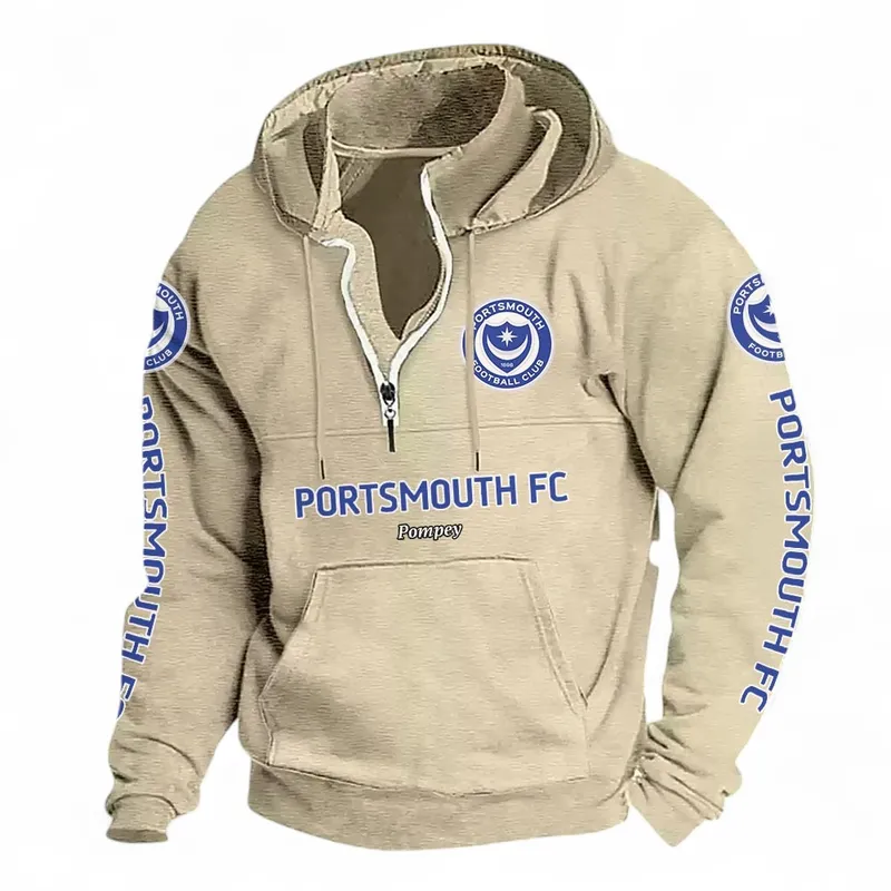 Football Fans Gift Casual Stand Up Collar Hoodie, Hoodie Stand-Up Collar Exclusive Logo For Sport Fan EPL125082225780-Dark Blue