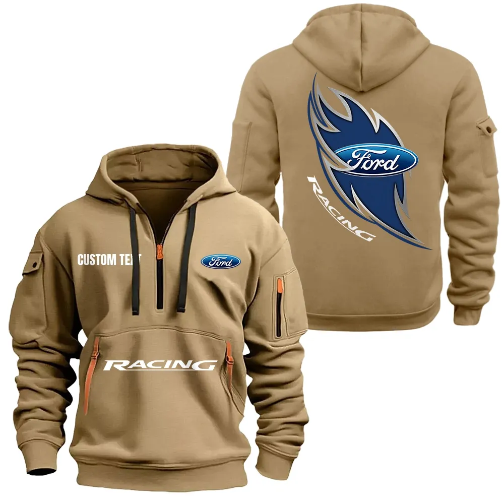 Ford Racing Hoodie Half Zipper CAR1701112081, CAR All Over Print Hoodie Half Zipper – Gray