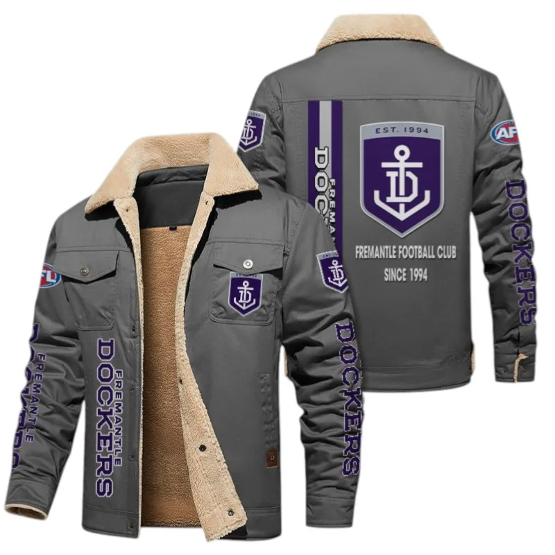 Fremantle Fans Gift Jacket Fur Collar Fleece, All Over Print Collar Fleece For Sport Fan AFL163080225127 - Gray