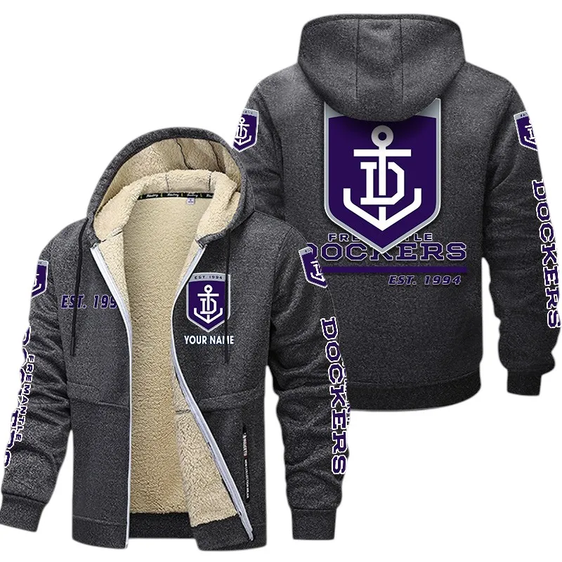 Fremantle Fans Gift Lamb Fleece Thick Coat, All Over Print Thick Coat For Sport Fan, Custom Name AFL144071725134 – Dark gray
