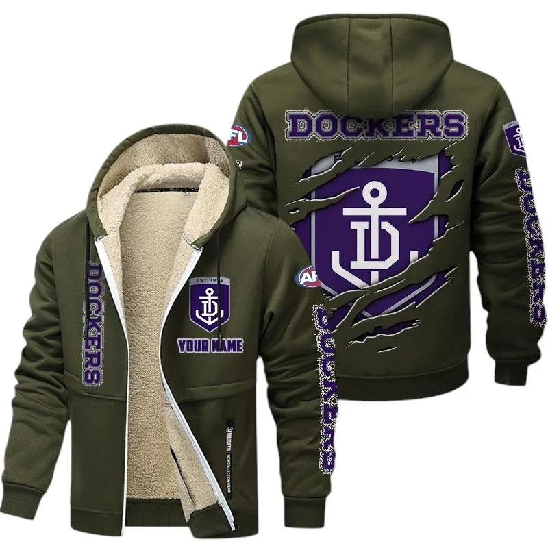 Fremantle Fans Gift Lamb Fleece Thick Coat, All Over Print Thick Coat For Sport Fan, Custom Name AFL145071825127 – Army Green