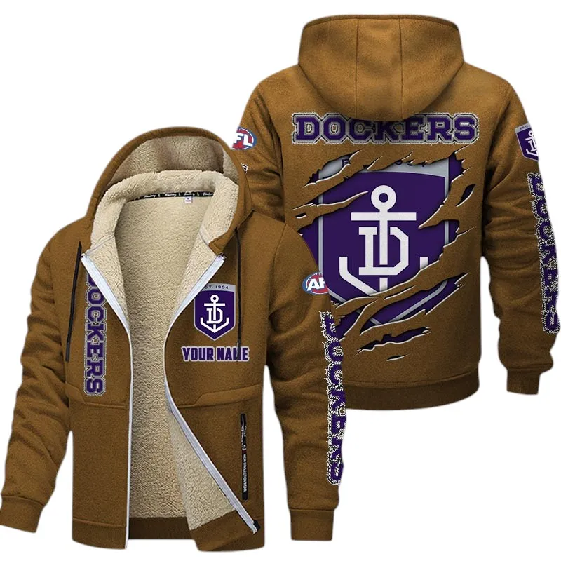 Fremantle Fans Gift Lamb Fleece Thick Coat, All Over Print Thick Coat For Sport Fan, Custom Name AFL145071825127 – Brown