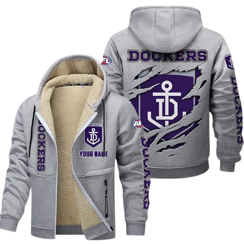 Fremantle Fans Gift Lamb Fleece Thick Coat, All Over Print Thick Coat For Sport Fan, Custom Name AFL145071825127 – Light gray