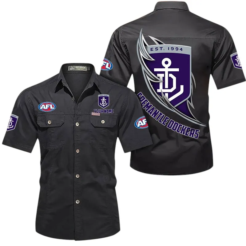 Fremantle Fans Gift Short Sleeved Shirt, All Over Print Shỉt For Sport Fan, Custom Name AFL155071425123 – Black