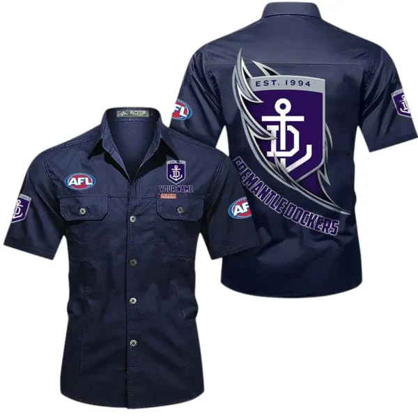 Fremantle Fans Gift Short Sleeved Shirt, All Over Print Shỉt For Sport Fan, Custom Name AFL155071425123 – Dark Blue