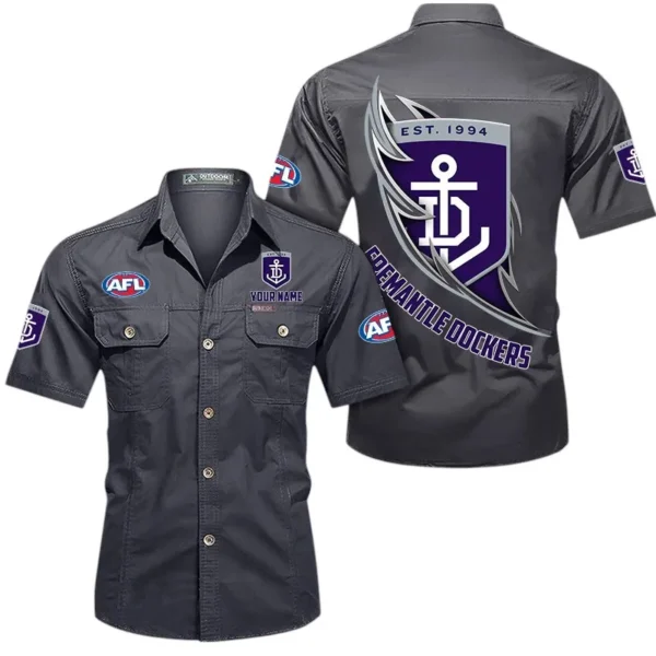 Fremantle Fans Gift Short Sleeved Shirt, All Over Print Shỉt For Sport Fan, Custom Name AFL155071425123 – Gray