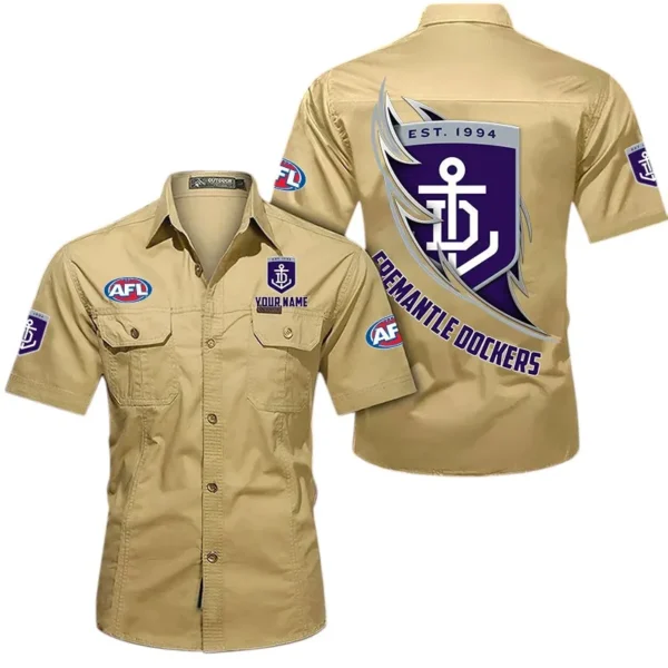 Fremantle Fans Gift Short Sleeved Shirt, All Over Print Shỉt For Sport Fan, Custom Name AFL155071425123 – Khaki