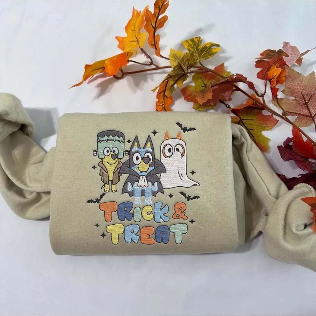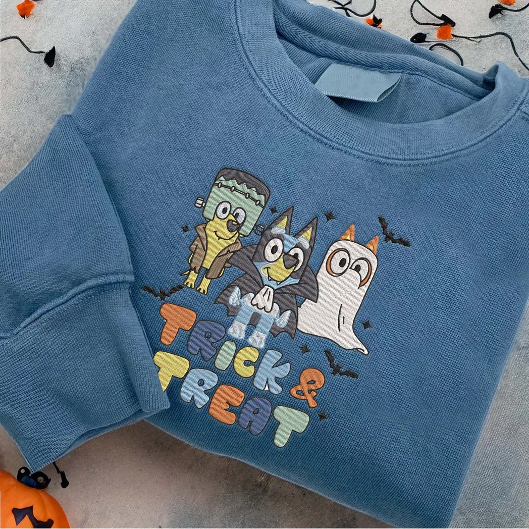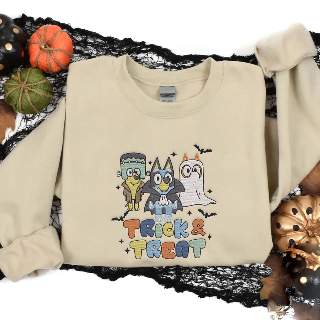 Friends And Bluey Cartoon Halloween Embroidered Sweatshirt Fashion Style