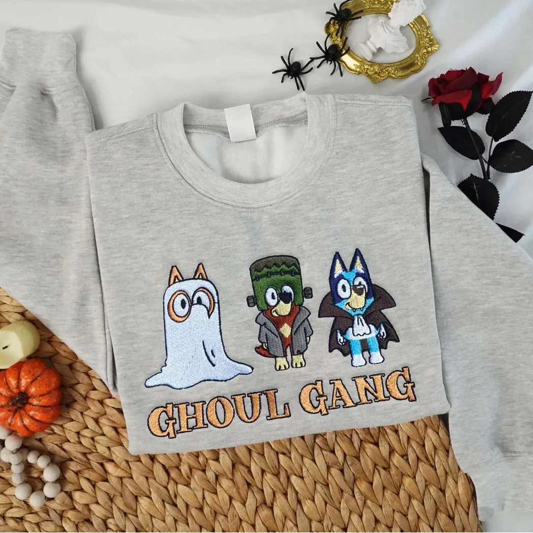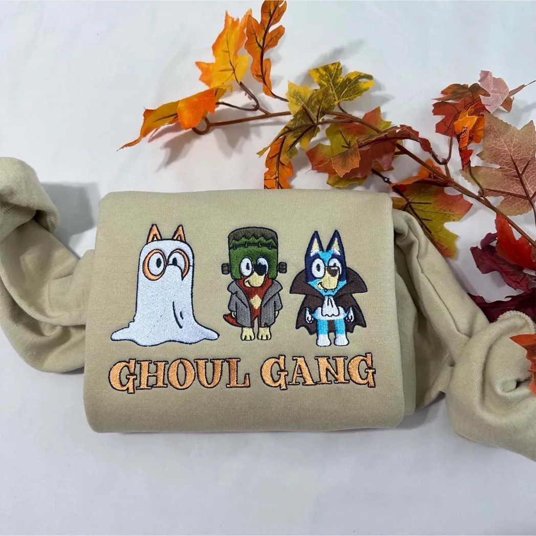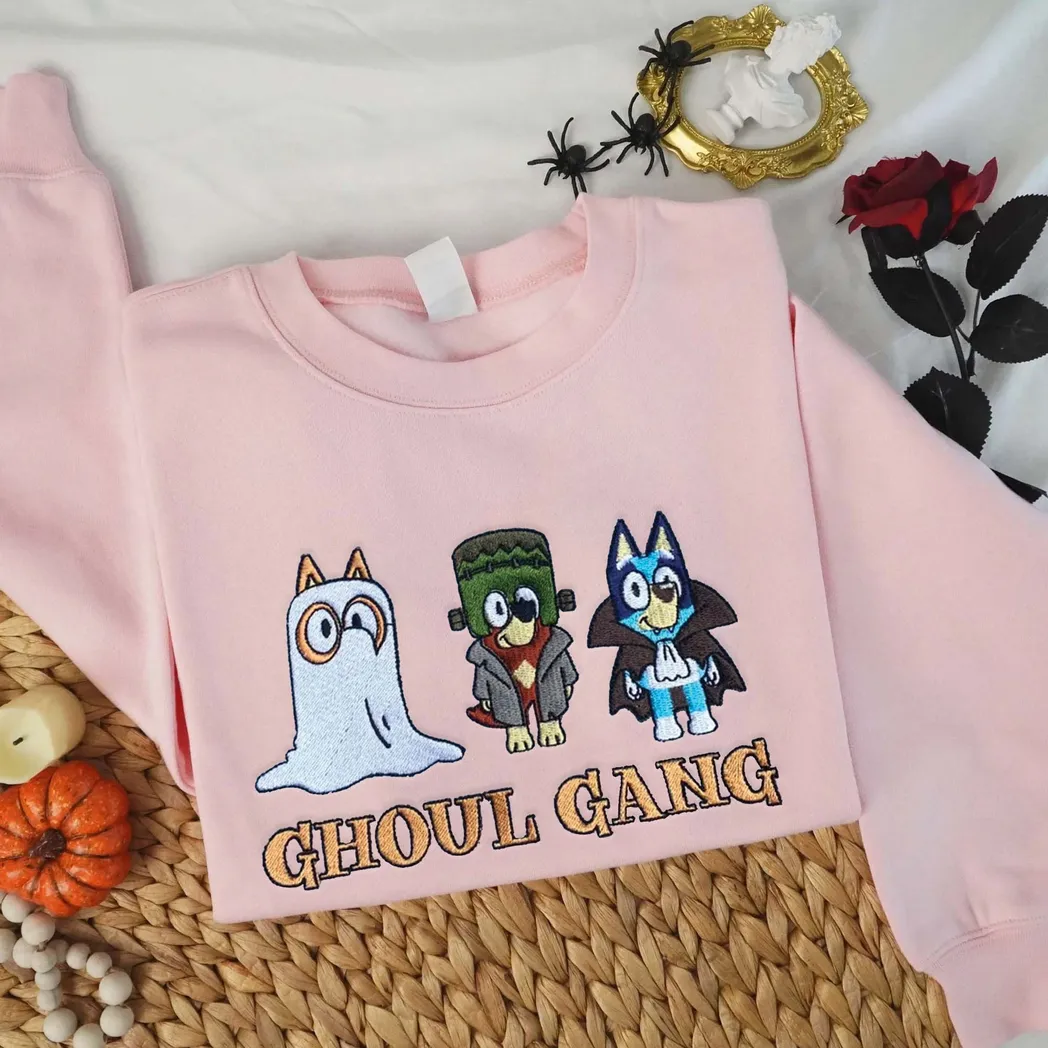 Friends And Bluey Cartoon Halloween Embroidered Sweatshirt Fashion Style